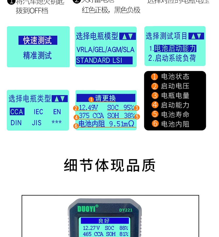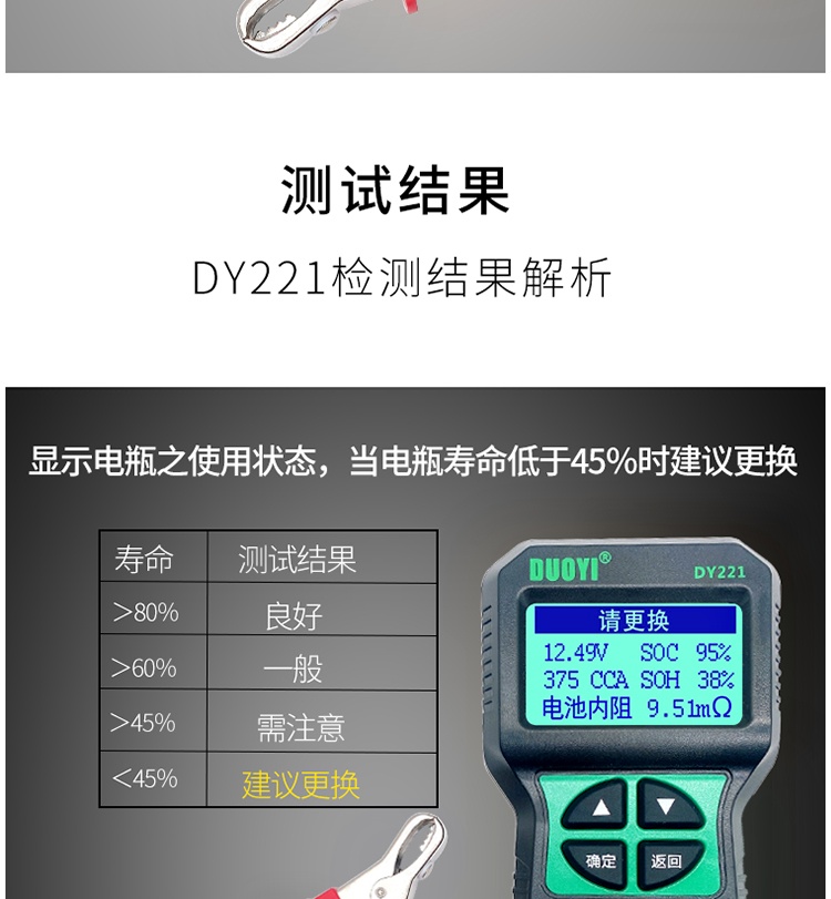 多一DY221/2015系列蓄電池檢測儀汽車電瓶測試儀壽命蓄電池測