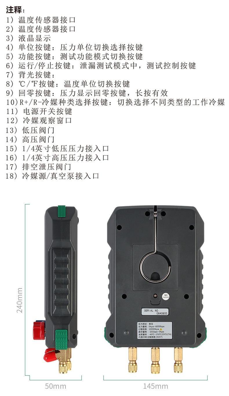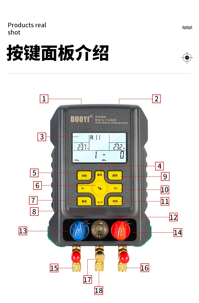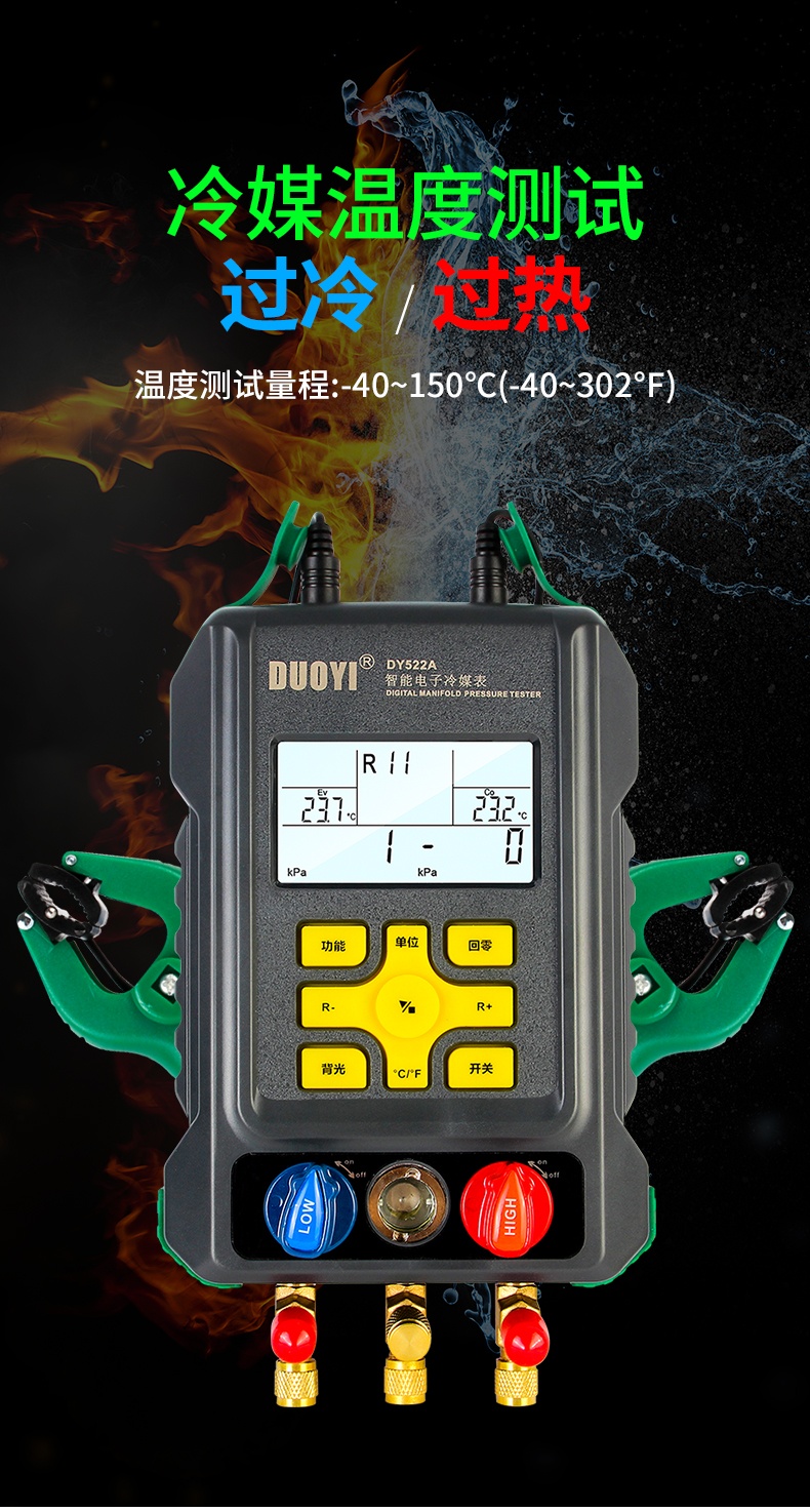 電子冷媒表空調充氟加液制冷維修汽車空調加氟壓力表DY522/DY522A