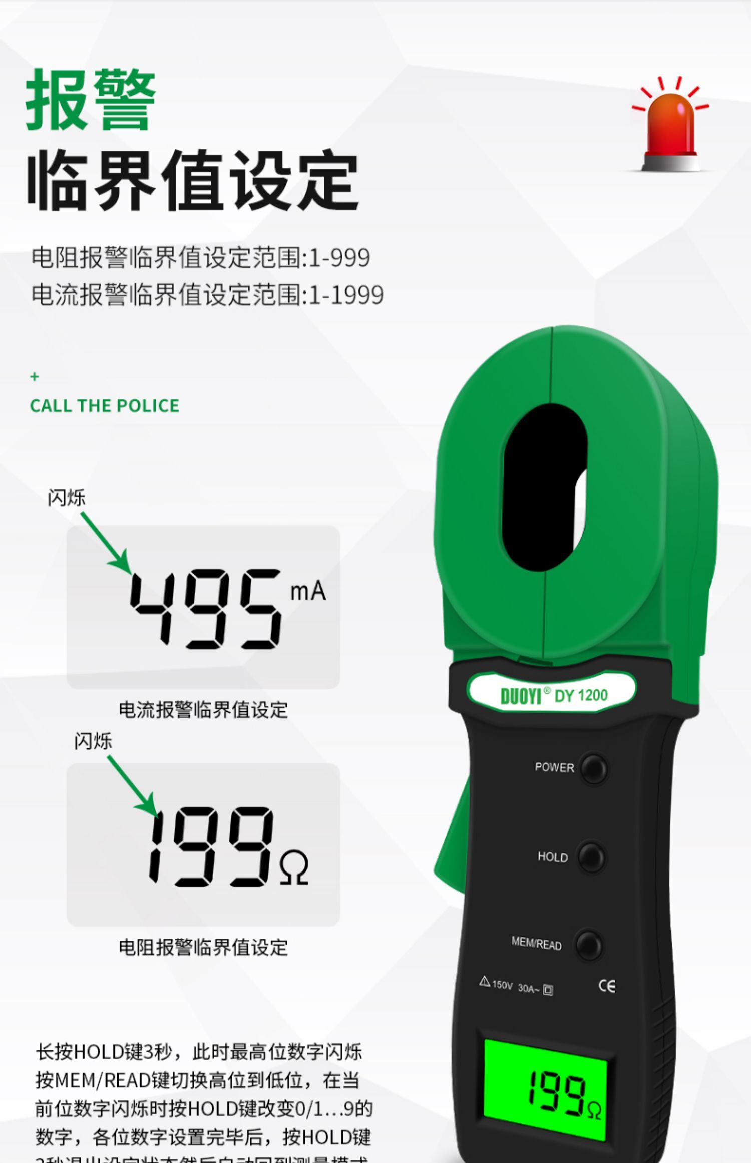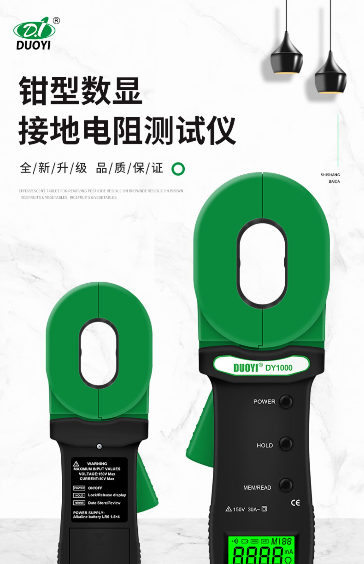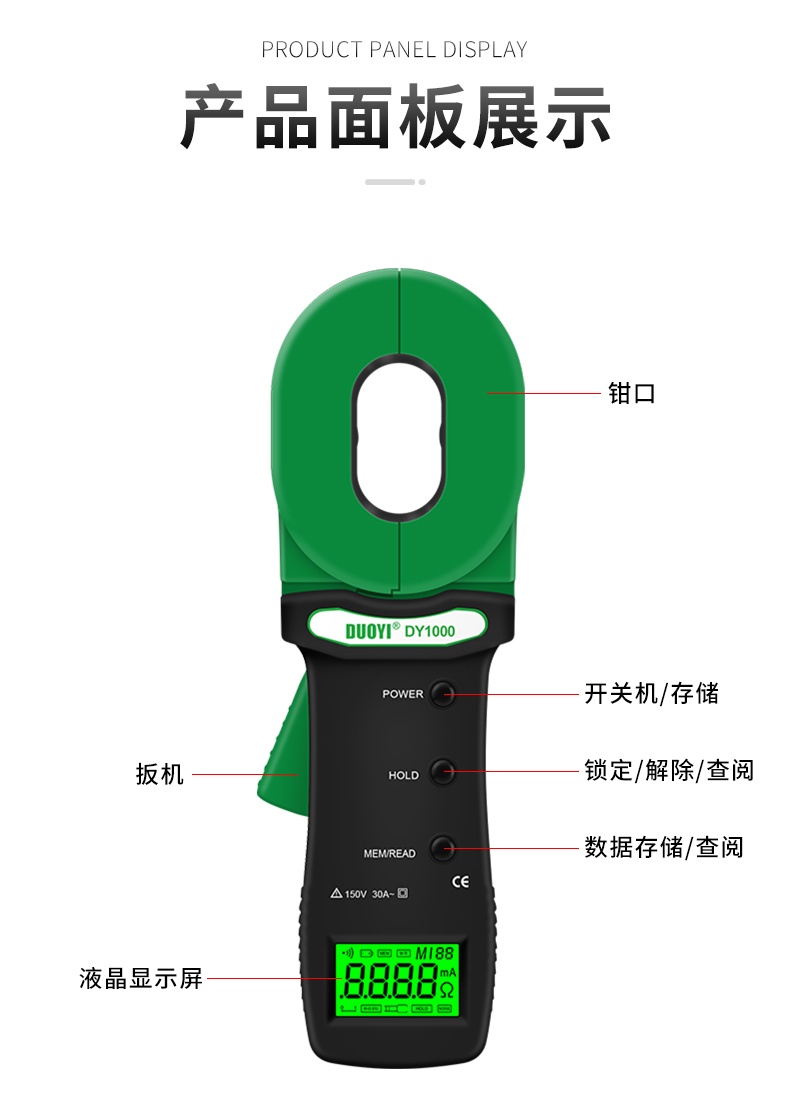 DY1000接地電阻測試儀高精度防雷數字測試儀器鉗形電力電阻測量儀